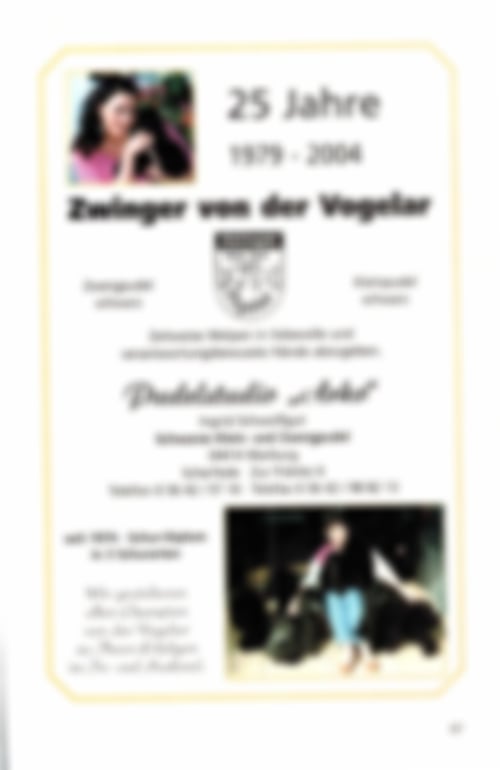 Als kleines Mädchen bekam ich das Hobby meines Großvaters Otto Naue aus erster Hand mit. Er ging als Jäger mit unserer Foxterrierhündin "Nelly" zur Jagd. Nicht selten hatte unsere Nelly Welpen, die dann später zu Jagdhunden ausgebildet wurden. Meine Hundeliebe ist durch diese Vorgeschichte gewachsen und mein sehnlichster Wunsch war es, später auch Hunde zu züchten. Meine erste Wahl fiel 1966 auf den Zwergpudelrüden "Arko vom Salzgittersee". Arko hat uns mit seinem lieben Wesen und seiner Intelligenz sehr viel Spaß gemacht. Jedoch musste ich, um Arko scheren zu lassen, sehr weit fahren. Daher habe ich 1974 einen Intensivlehrgang bei Frau Leonartz im Zwinger "Der schwarze Joker" absolviert. Im selben Zeitraum habe ich die zwei Großpudel "Mike" und "Mika" kennengelernt. Da war die Liebe zum Großpudel ebenfalls entflammt. Beim Bau unseres Hauses haben wir einen Raum zum Baden und Scheren einrichten lassen. Nach der Fertigstellung unseres Hauses haben dann die Großpudelhündin "Piroschka" und die Kleinpudelhündin "Quenny" Einzug gehalten. Mit diesen beiden Hunden habe ich die ersten Ausstellungen besucht. Mittlerweile zieren weit über 140 Pokale unsere Regale. . . . . Im Jahre 1979 haben wir unseren Zwinger angemeldet. Seitdem züchten mein Mann und ich gesunde Pudel mit einem tollen Wesen. Weiterhin verfüge ich über 30 Jahre Erfahrung als Zuchtwartin. Diese Erfahrung lassen wir in die Zucht und Haltung unserer Pudel selbstverständlich einfließen. . .